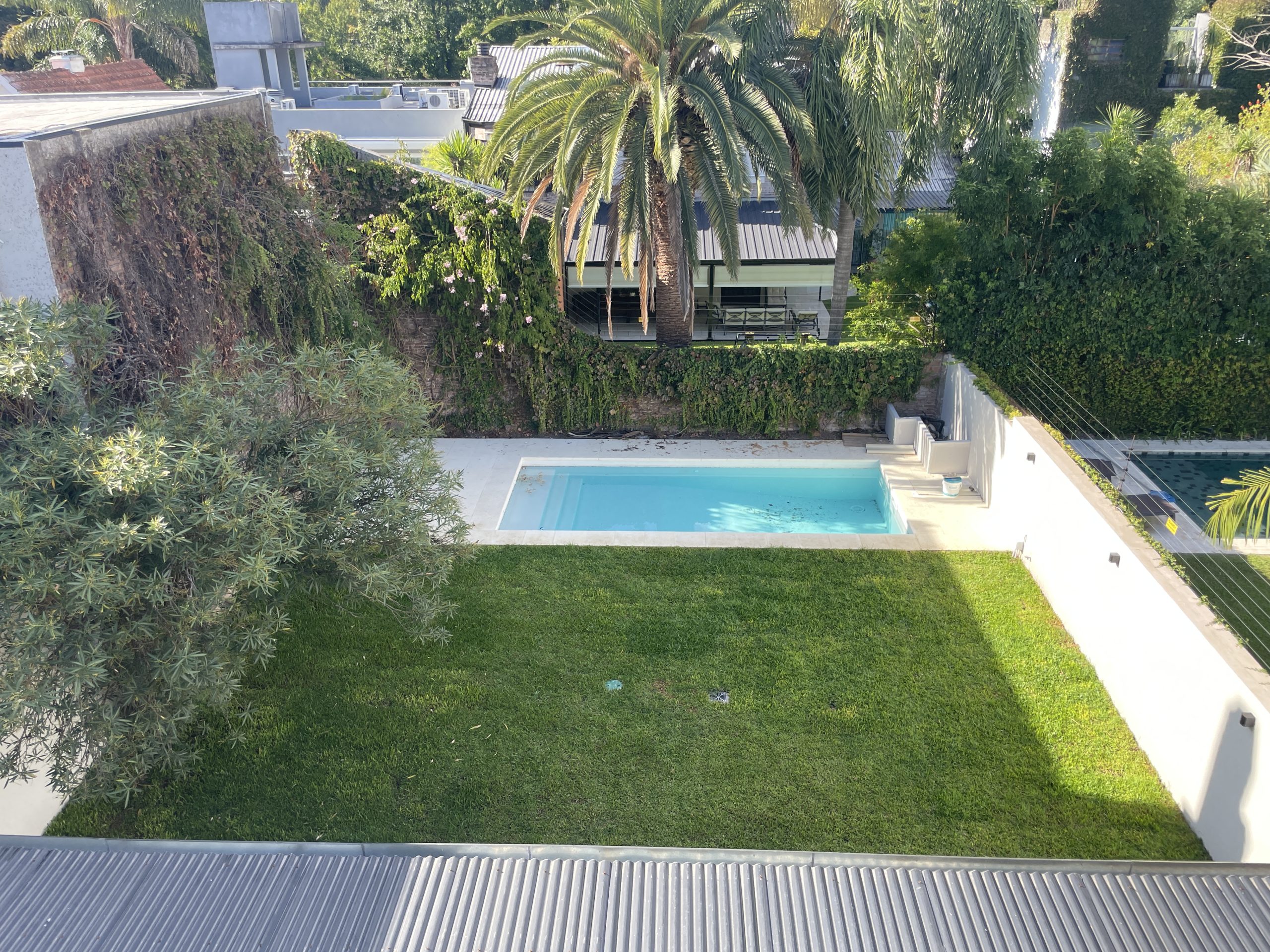 Jardín con Galeria y Parrilla y Pileta preparada para climatización.
