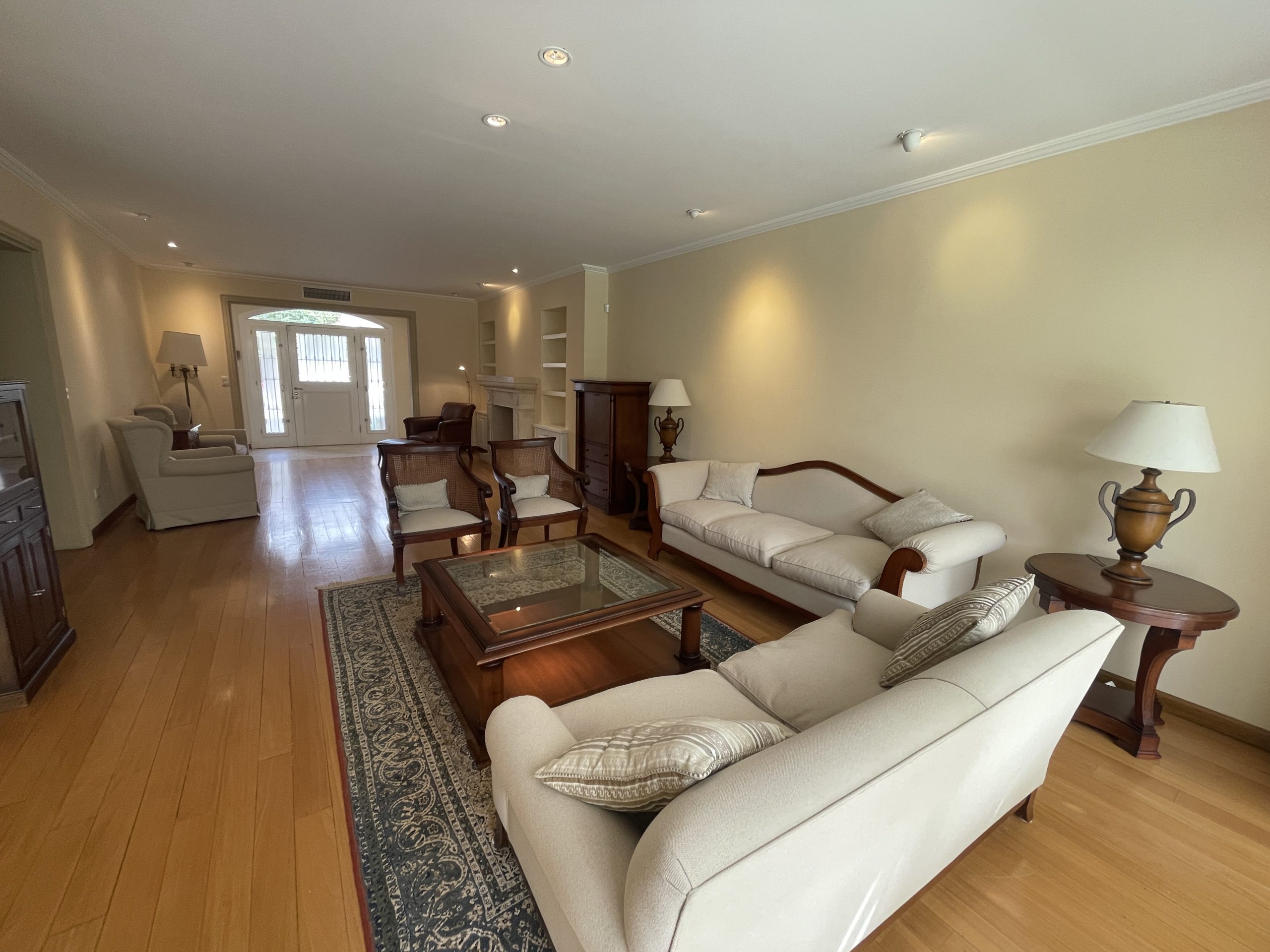 P.B.: Living (11 X 5) con pisos de roble americano hidrolaqueado y chimenea – Comedor separado (con pisos de madera) con salida a la galeria – Escritorio (5,5 X 4) o 4 dormitorio en suite con hidromasaje – Toilette – Cocina moderna con comedor diario y salida independiente de servicio – Garage para 2 autos