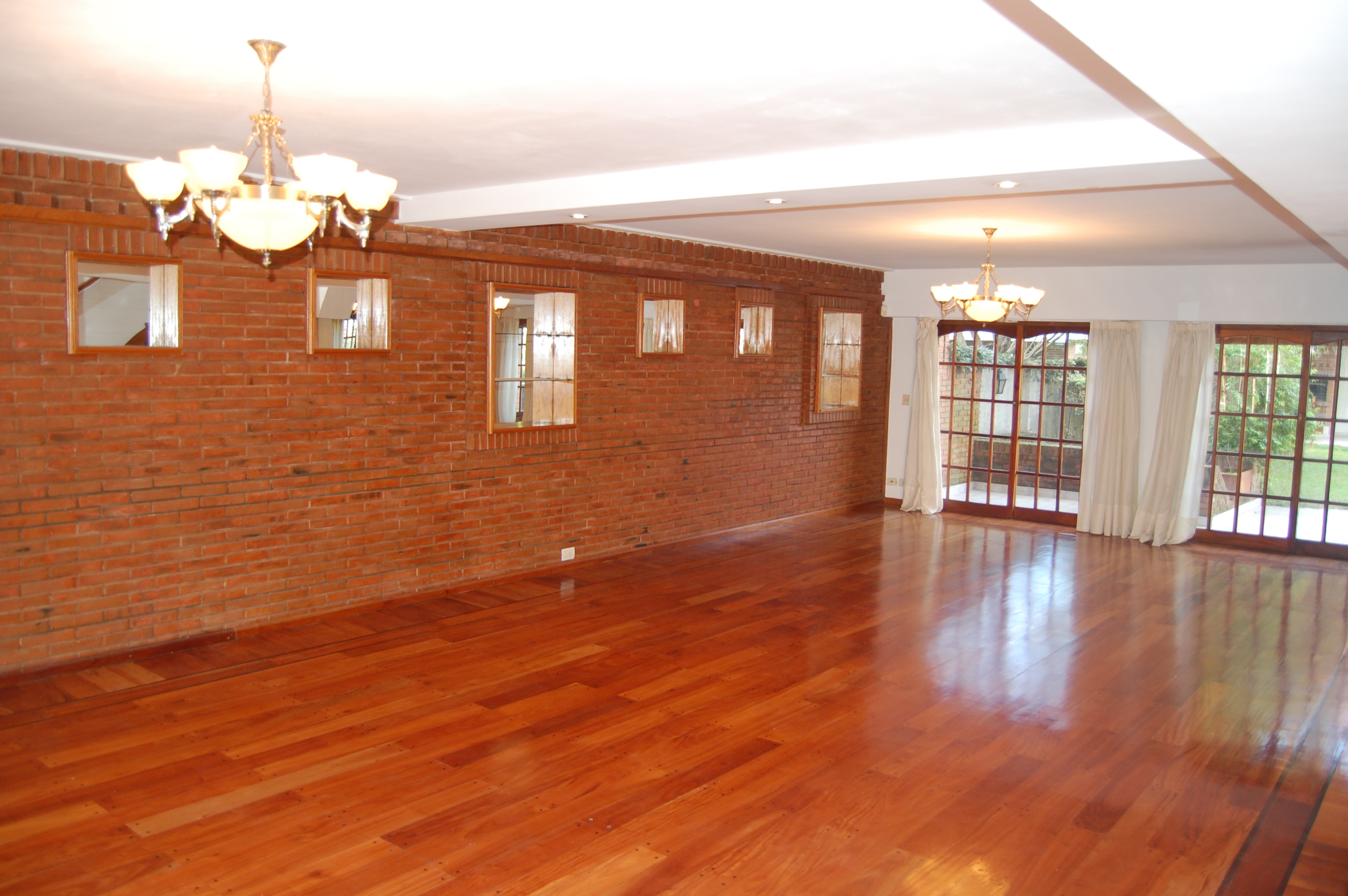P.B.: Hall – Gran living-Comedor con chimenea- Cocina – Comedor diario – Toilette (Los pisos del Living-comedor son tarugados)